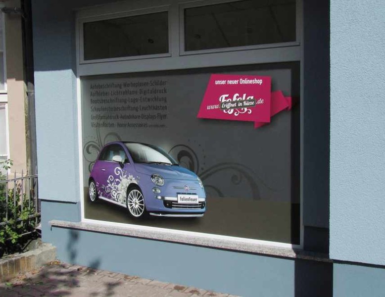 Unsere Schaufensterbeschriftungen werden im Folienplottverfahren aus Hochleistungsfolien und im Digitaldruck für Sie hergestellt.